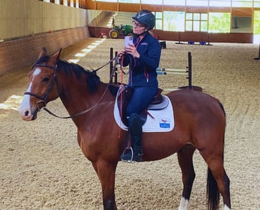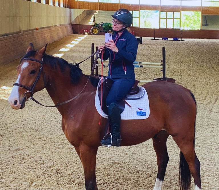 "For a laugh at my expense, check out my blog Horses Hormones and a Hot Mess Equestrian."